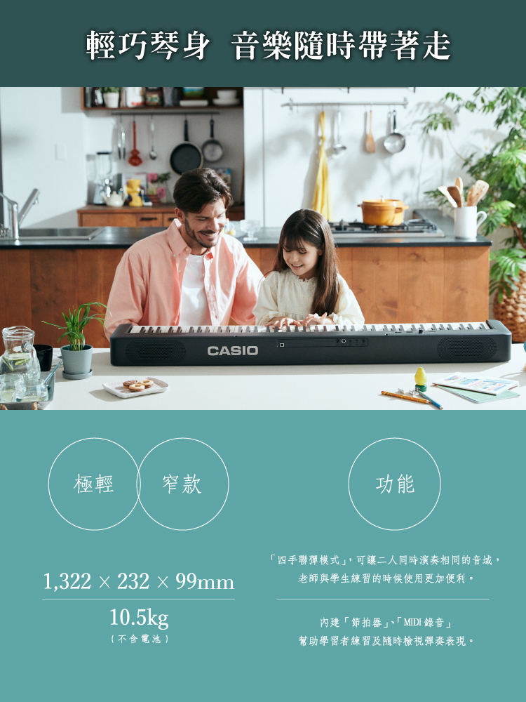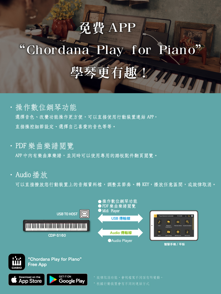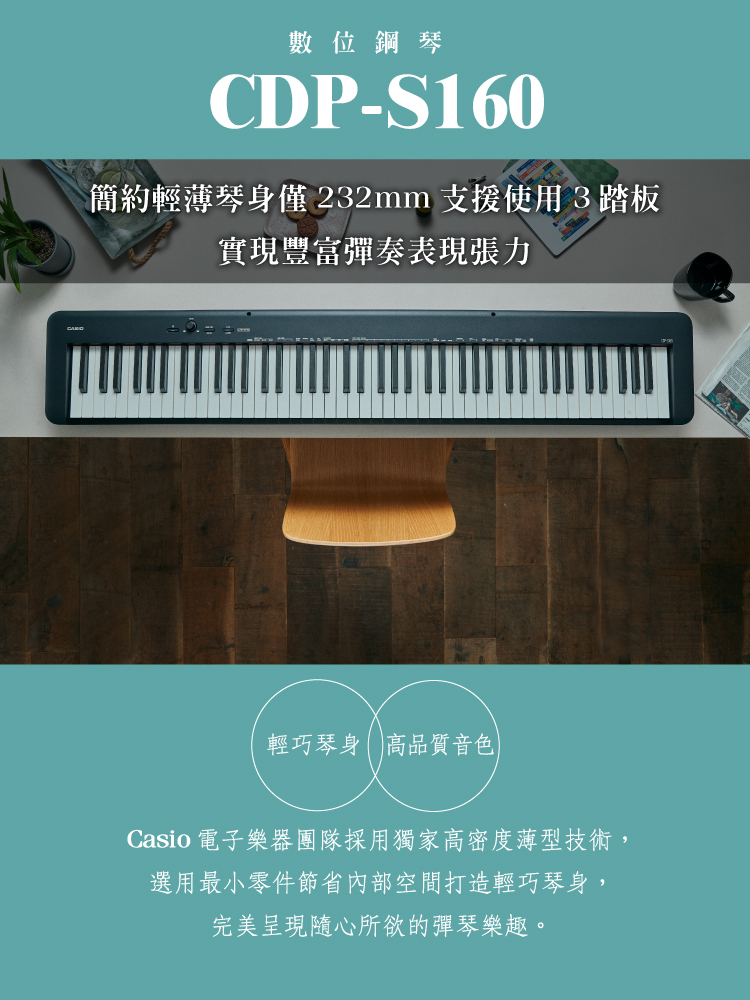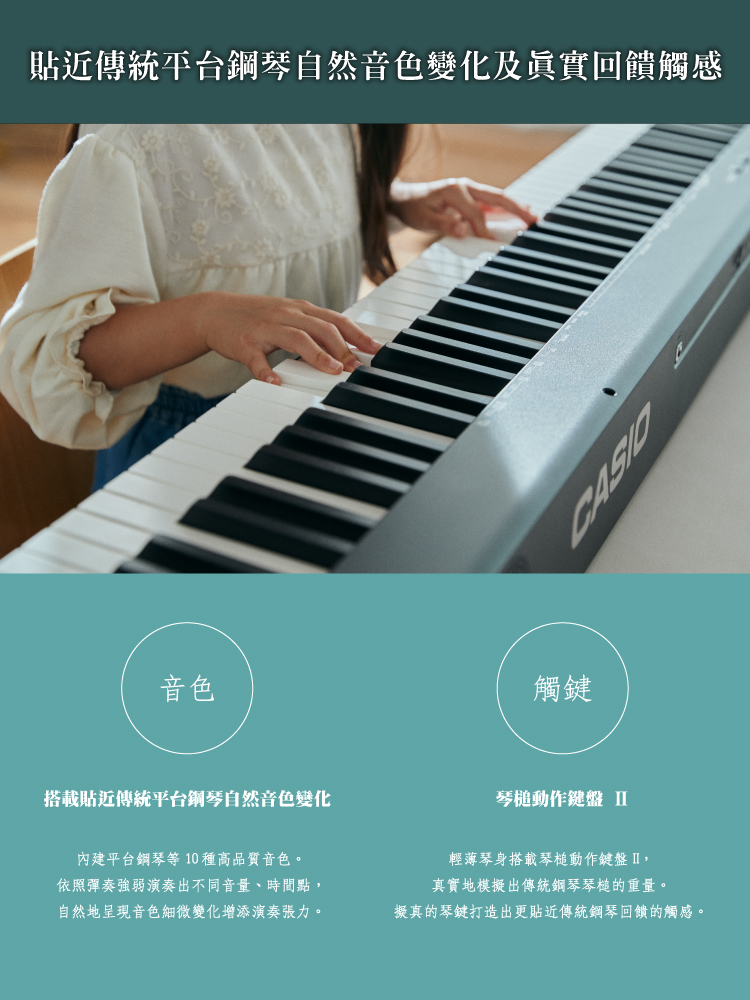 具備高音質音色、琴鍵觸感
