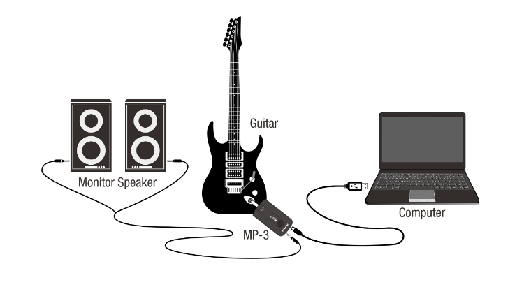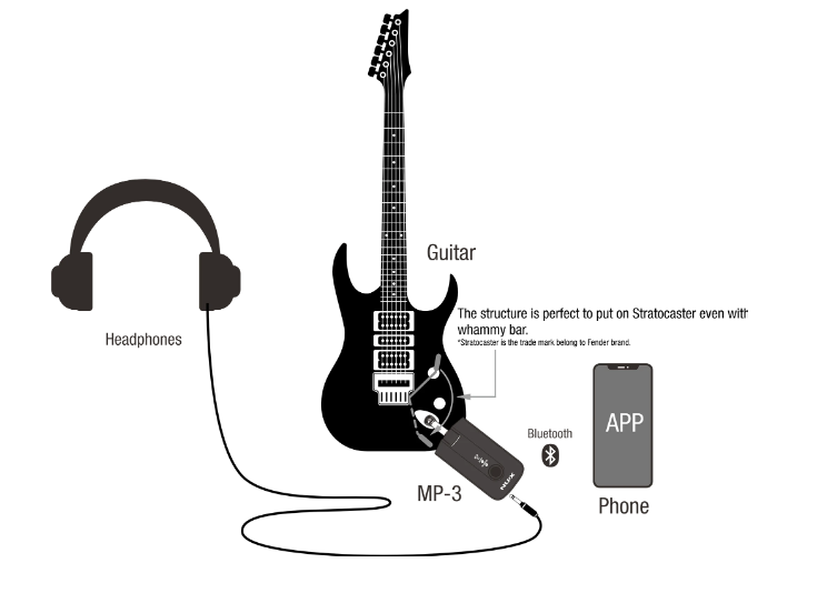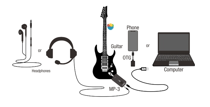 將MIGHTY PLUG PRO的6.35介面插入您的吉他,再將耳機插在PHONE口,