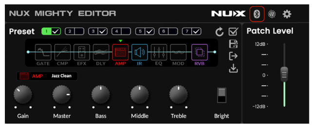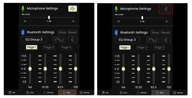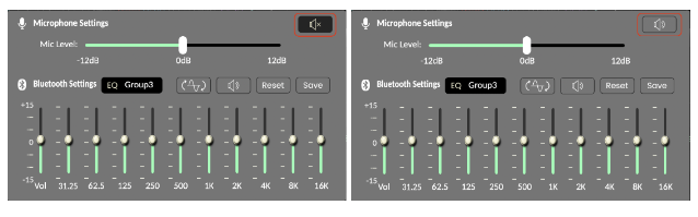 Mighty Editor™編輯軟體中: 點擊藍牙圖示,您將可以看到耳機音量設置及藍牙均衡介面,點擊喇叭圖示可一鍵麥克風靜音