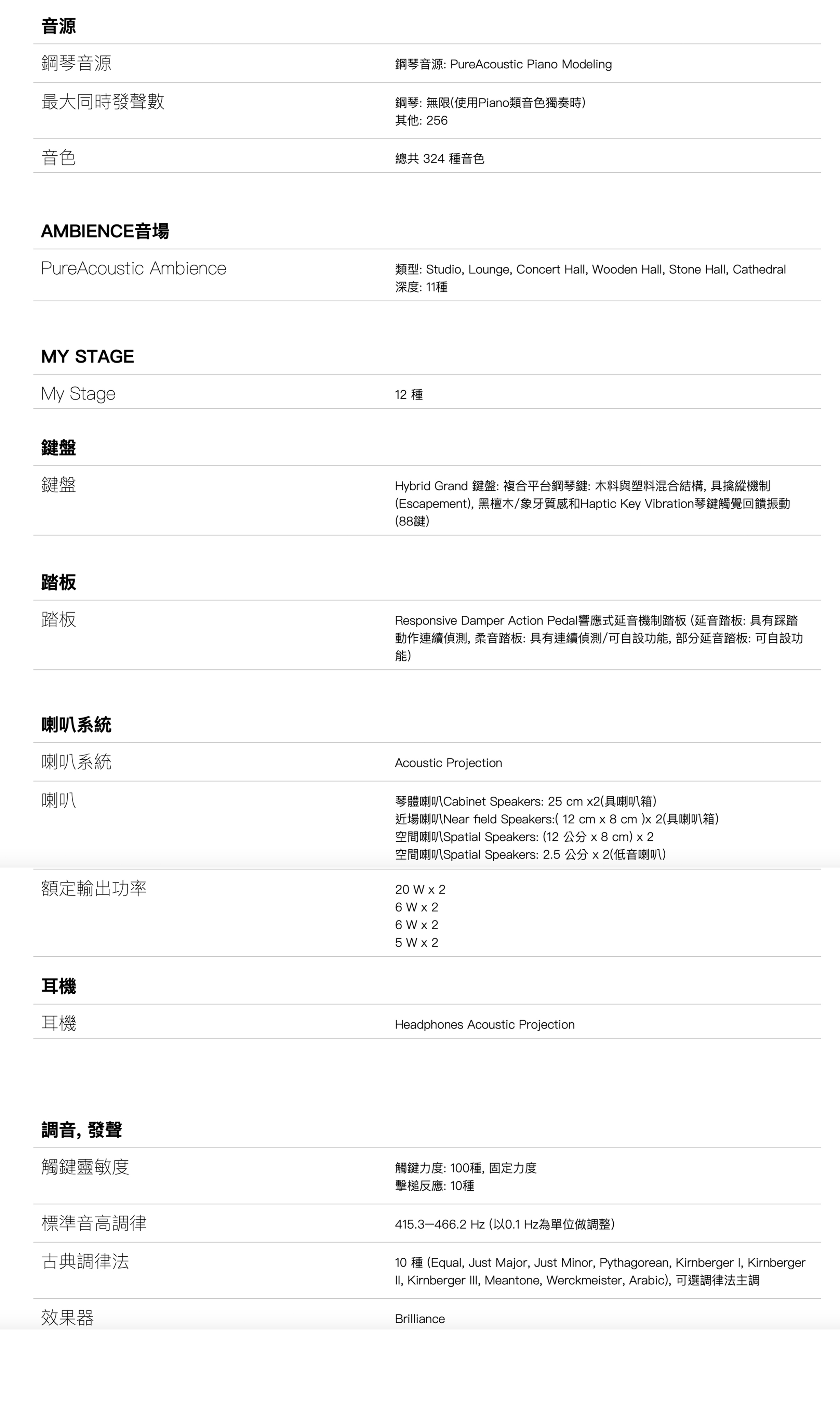 · Acoustic Projection音響系統,具有4音路/8喇叭結合重現傳統鋼琴深遠、豐富的聲域