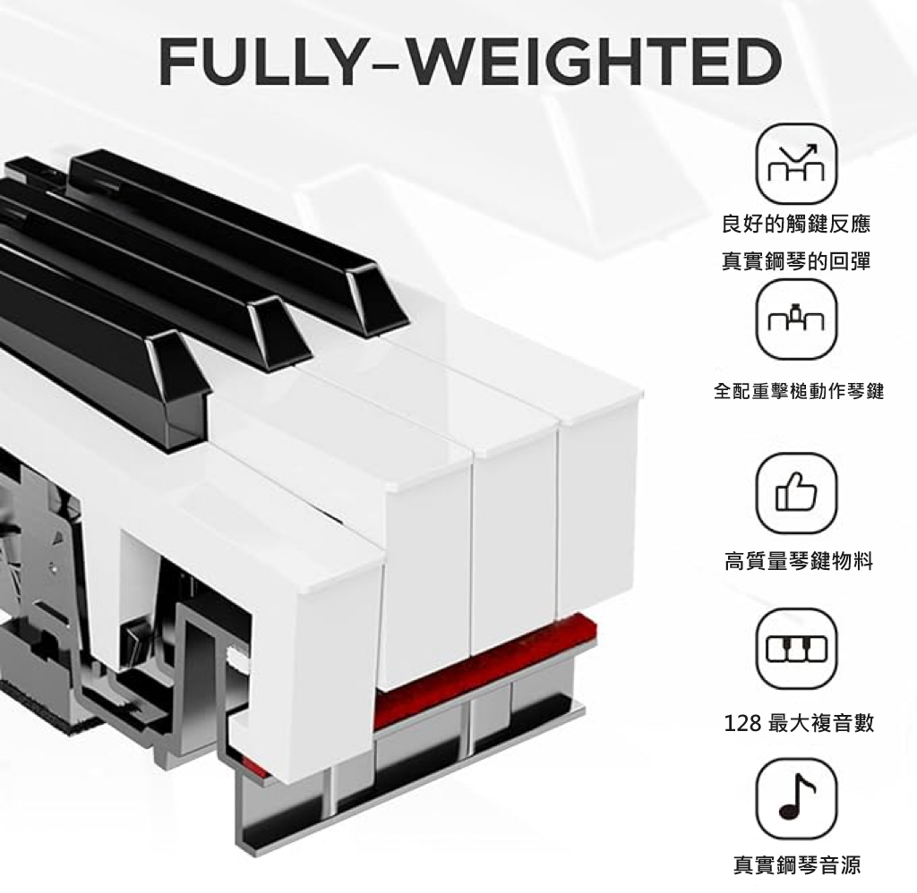 仿鋼琴式三踏板88鍵錘擊漸進式鍵盤搭配3踏板,為演奏者帶來更好的音樂體驗;非常適合初學者和鋼琴愛好者。 |